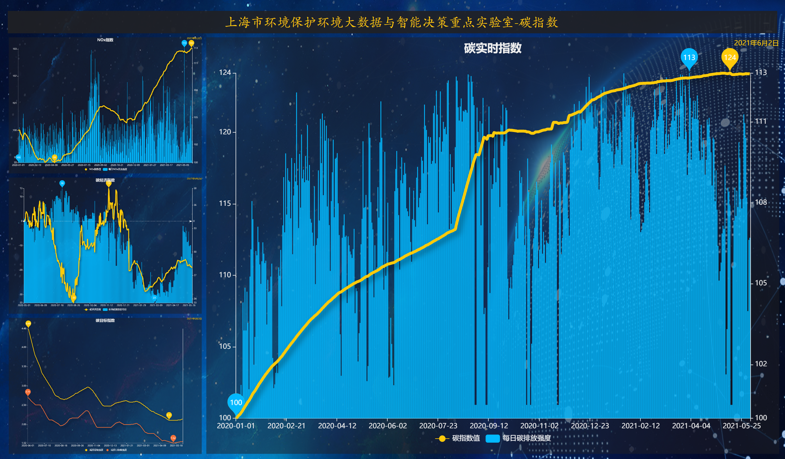 在蓝天保卫战与应对气候变化方面,降碳与减污之间可以产生很好的协同效应。威尼斯144777欢迎您作为依托单位,联合上海市环境监测中心、上海市环境保护信息中心共同建设了上海市环境保护环境大数据与智能决策重点实验室,实验室与瑞格智研联合研究团队应用大数据和人工智能技术,结合行业、企业的生产经营和污染物排放状况,创建了实时动态的碳污协同减排指数体系,分析得出了碳系列指数——碳排放指数、碳目标指数、碳经济指数